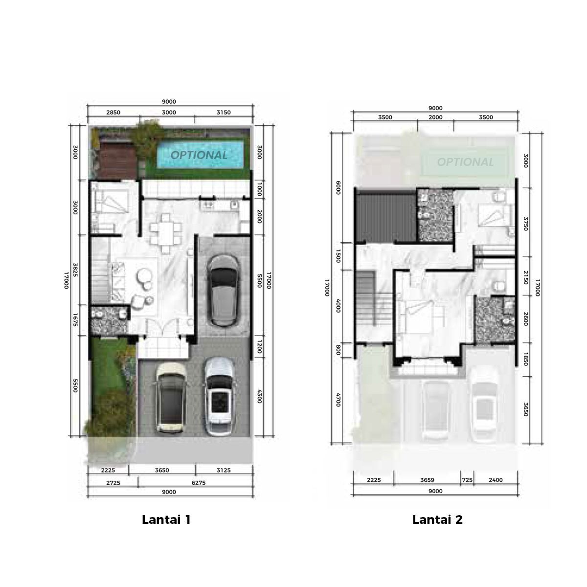 1 Garasi + 2 Carports